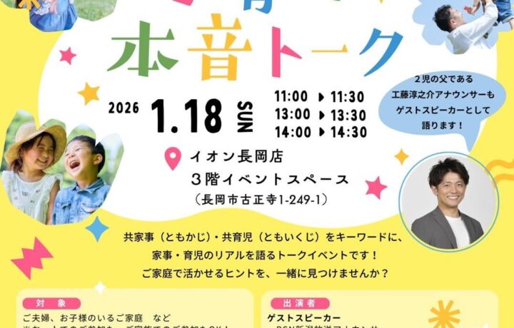 2026.01.09 2026.01.29 「家事 子育て」をテーマにトークイベントをします! Post Share Hatena Line RSS feedly Pin it note 記事のタイトルとURLをコピーする 「家事 子育て」をテーマにトークイベントをします!1月18日(日)@イオン長岡店の3Fイベントスペースにて開催します!お近くの方は是非お越しください! スマイル西蒲キャンプを実施しました☆ 前の記事